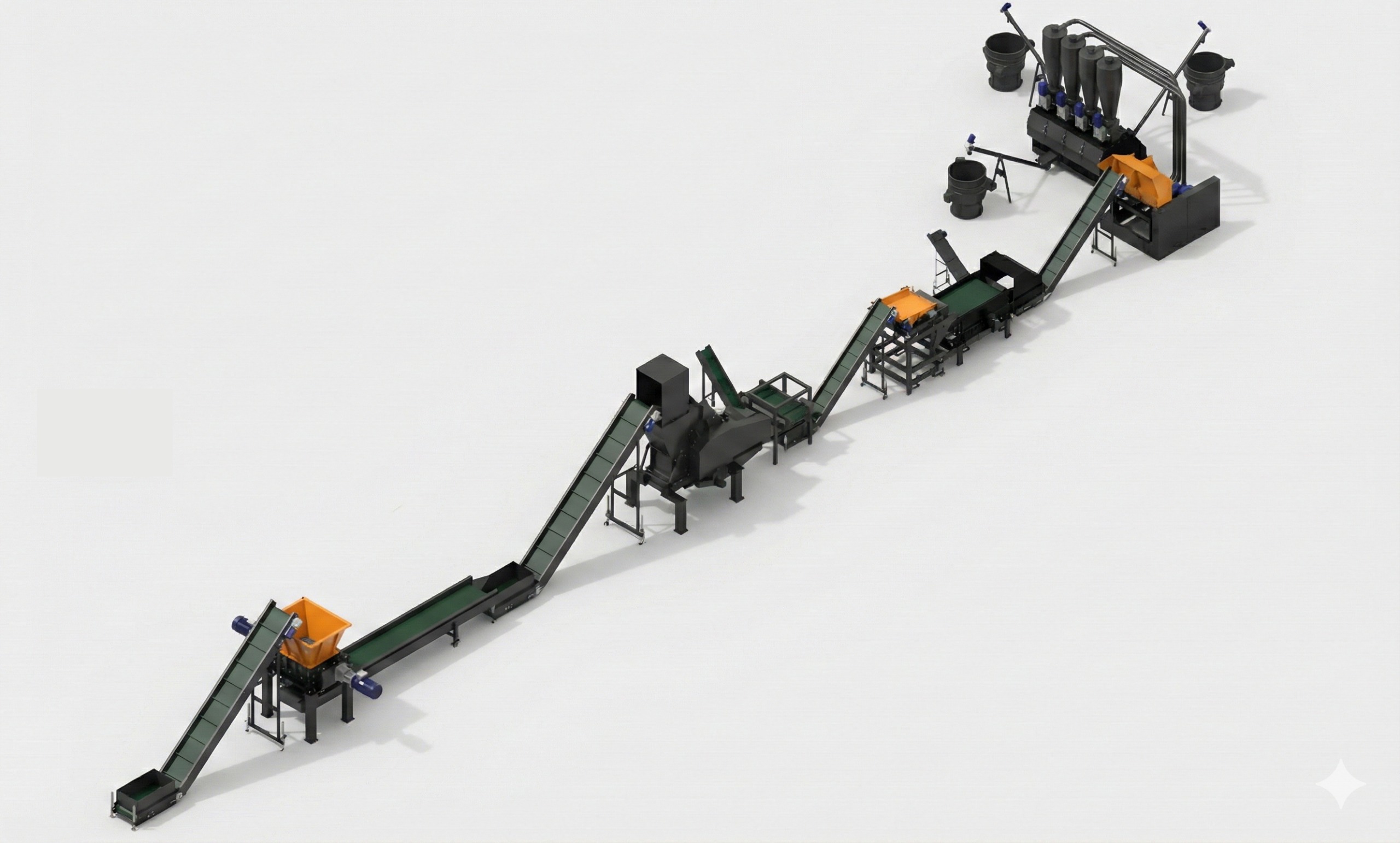 • Sistemi Densimetrici: Per la separazione accurata dei materiali in base al loro peso specifico.